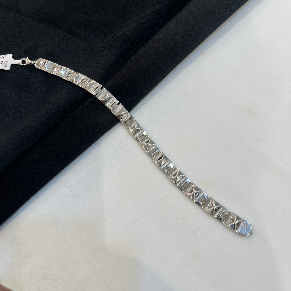 The bracelet’s structured layout creates a powerful, masculine silhouette, while the polished surface reflects a mirror-like shine. Its premium weight and smooth articulation ensure both comfort and durability, making it an ideal signature accessory for everyday wear or special occasions.